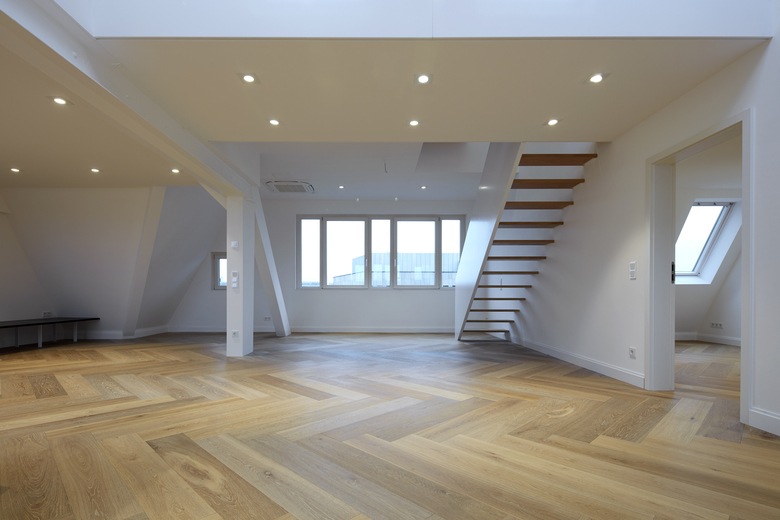 Ein Stadthaus von 1910 wird konsequent bis unter die Dachspitze ausgebaut. Das Wohnniveau erreicht damit die Hochhausgrenze und verwöhnt mit Weitblick über die Stadt und in den Grafenberger Wald.