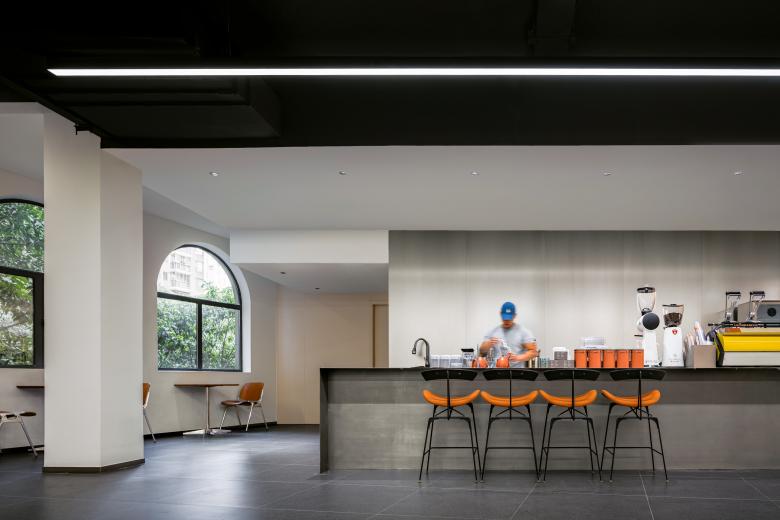 The open coffee space allows seated guests to interact with the climbing area during breaks, fostering communication among activities within the venue. The section near the exterior wall utilizes natural light, enhancing environmental comfort. This space serves as an energy refill after workouts and a hub for climbers to exchange climbing techniques.The fences are woven from climbing ropes, embedding athleticism into the boundaries themselves. Here, neighbors bond through belay, turning climbing into