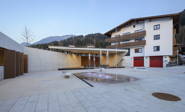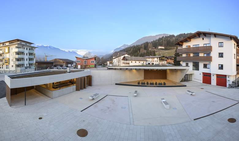 Durch die Neugestaltung des Dorfzentrums von Pill wurde eine abgeschirmten "Oase" geschaffen. Statt des bisherigen unstrukturierten öffentlichen Raumes findet die dörfliche Gemeinschaft nun eine geschlossene Platzsituation vor, die eine vielseitige und hochwertige Nutzung ermöglicht