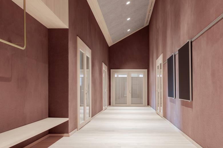 Durch eine natürliche und geerdete Materialwahl entsteht eine bodenständige und behagliche Raumatmosphäre - ein Gefühl des 'Zuhause-Seins'. Die vertrauten, regionalen Materialien – wie handverriebene Kalkputze mit lokalen Zuschlägen, sowie unbehandeltes Tannen- und Ahornholz – fördern dank ihrer Qualität die kommunale Identifikation, wodurch eine langfristige soziale Akzeptanz erreicht wird.