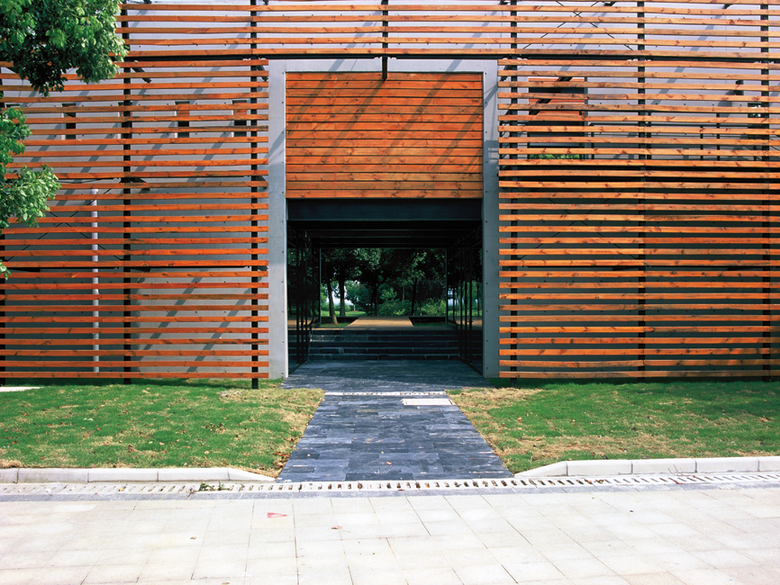 Sitting at the west suburb of Kunshan, a booming industrial city, the Lake Yangcheng Park of 42.5 hectares is the largest public green space on the lake shore, visited heavily by central-city residents during the week ends. The linear building site lies between the main public parking lot and a curved boardwalk which leads people to the waterfront and other attractions.