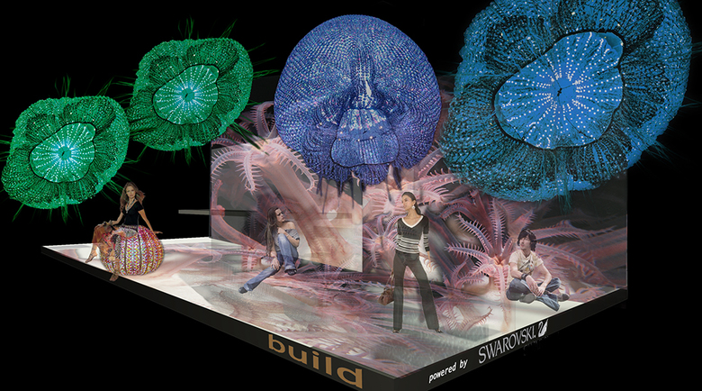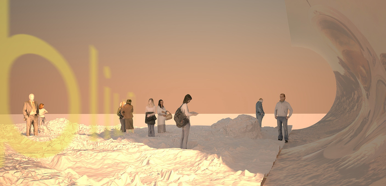 Ausstellungen dienen seit jeher dazu Aufmerksamkeit zu erwecken, aufzufallen und Neugierde zu wecken und zum Verweilen einzuladen. Für die Architekturzeitschrift build galt es, unter diesem Aspekt einen Messepavillon zu gestalten. Die entworfene Mondlandschaft soll die Besucher in eine fremde Umgebung beamen und architektonisch aus ihrer Alltagswelt herausreißen, zum Träumen anregen, Unterhaltungen ermöglichen, die am Officedesk nicht stattfinden. Es entsteht eine Magie, die dem Besucher das Gefühl gibt, er wäre durch einen Spiegel gegangen und hätte seine Welt hinter sich gelassen. Anstelle dessen ist er in eine Neue getreten, fremd und doch vertraut wo es nicht zugeht wie anderswo auf dem bewohnten Planeten sondern wie in einem seltenen Traum.
