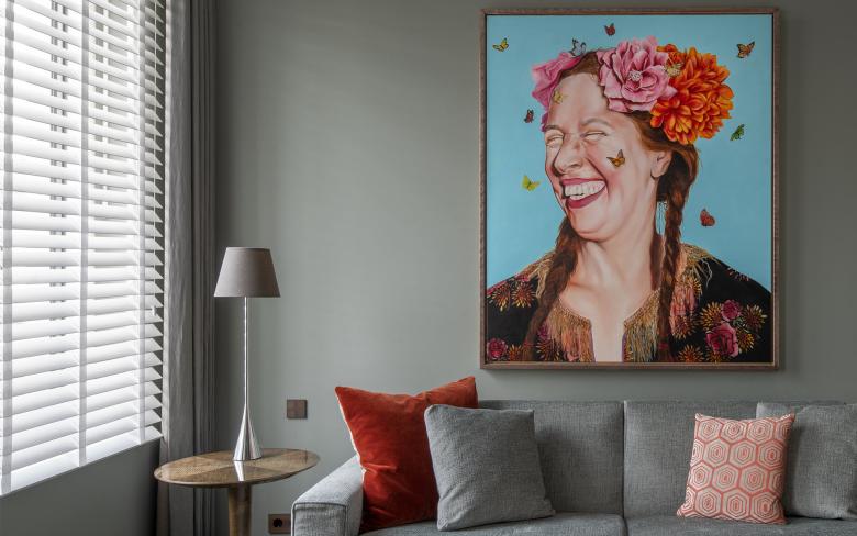 Nahe dem Frankfurter Palmengarten liegt das Diplomatenviertel, eine Villengegend mit großzügigen Gärten und altem Baumbestand. Das Gebäude, in dem sich diese Wohnung befindet, wurde 2020 fertiggestellt. Zu Projektbeginn fanden wir einen leeren Grundriss mit zwei Betonstützen vor.