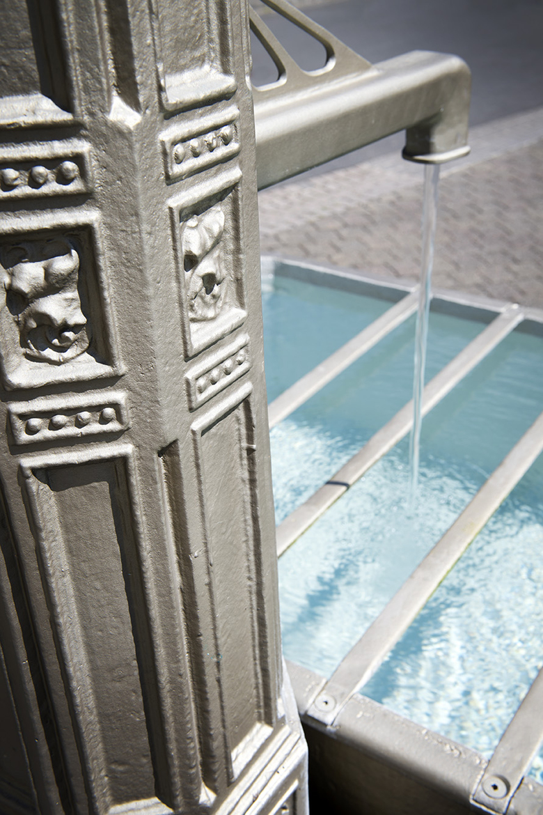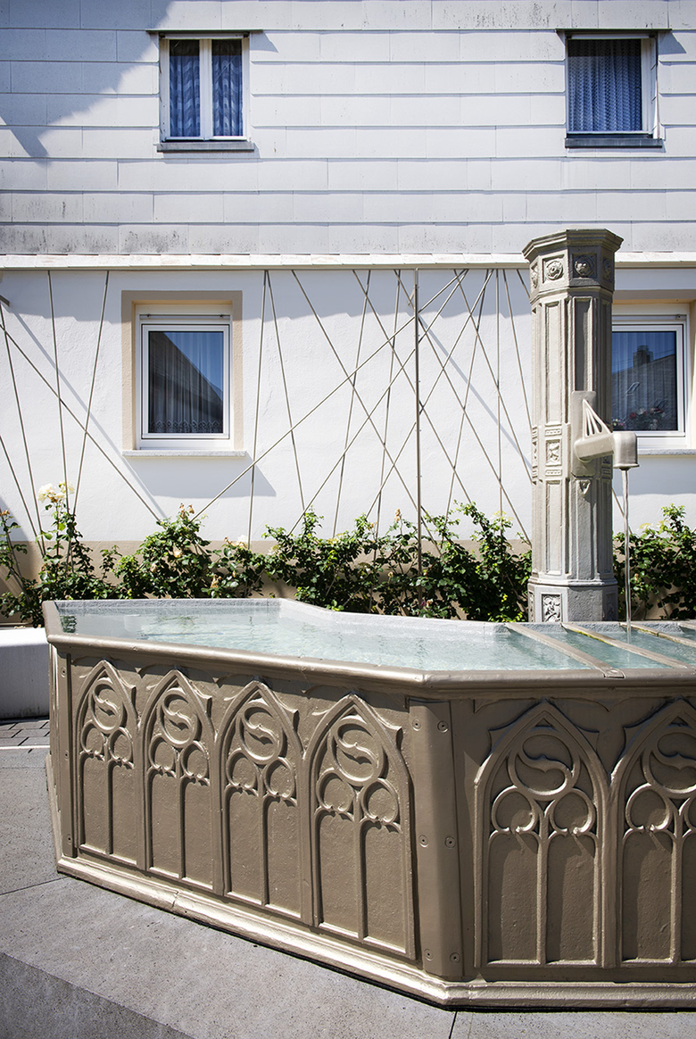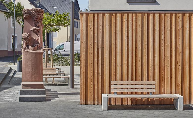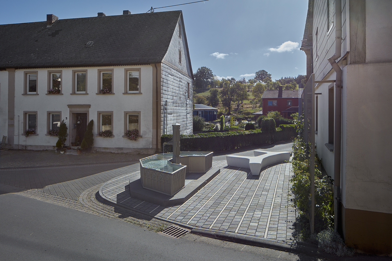 Der baugeschichtlich bedeutende, neugotische gußeiserne Laufbrunnen wurde restauriert und wieder zum Leben erweckt. In diesem Zusammenhang wurde der Brunnenplatz als innerörtlicher Treffpunkt neu gestaltet. Das klare Wasser des Brunnens, neue Beläge in heimischem Basaltstein, Sitzbänke in Weißbeton sowie Pflanzungen und ein Beleuchtungskonzept sind Eckpfeiler der Planung.