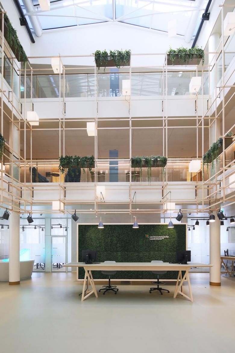 Beim Umbau der Geschäftsstelle der Liechtensteinischen Landesbank in Vaduz lag der Ateliercharakter im Vordergrund.