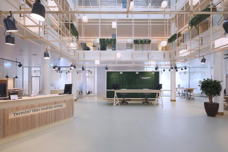 Die einladende Atmosphäre in den öffentlichen Bereichen sowie die funktional-dekorative Beleuchtung der Büros und Besprechungszimmer verleihen dem Gebäude einen speziellen Bürocharakter.