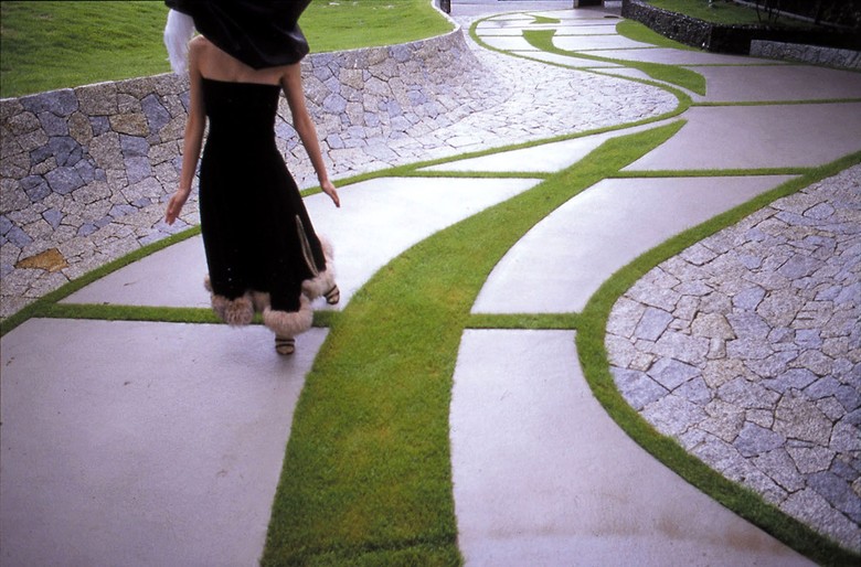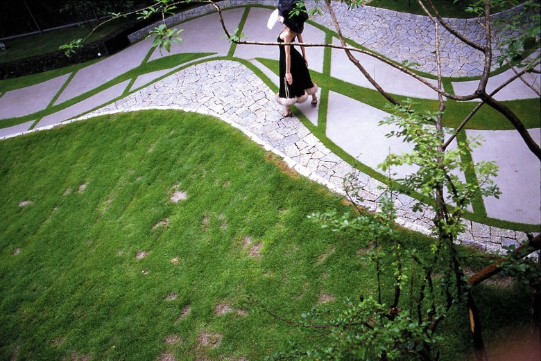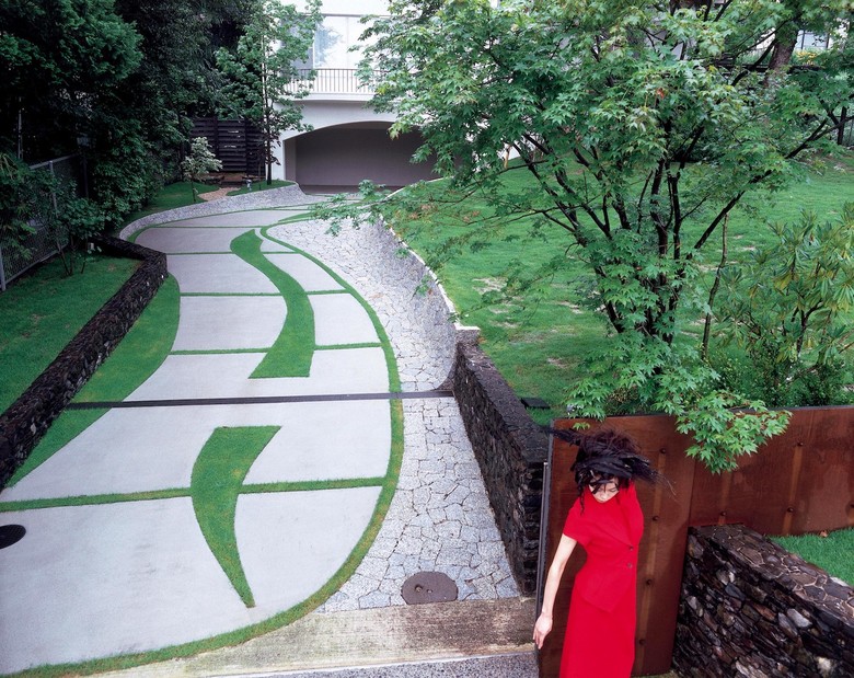 築34年の建物と庭のリノベーション庭の1/3をしめる車道を庭として成り立たせたいと考え、一度アンティークカーをビルドインガレージに入れ、門で仕切り、車道を