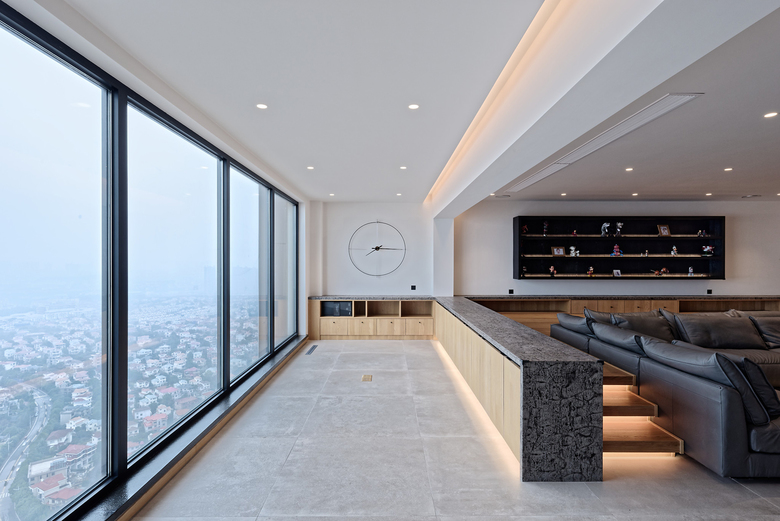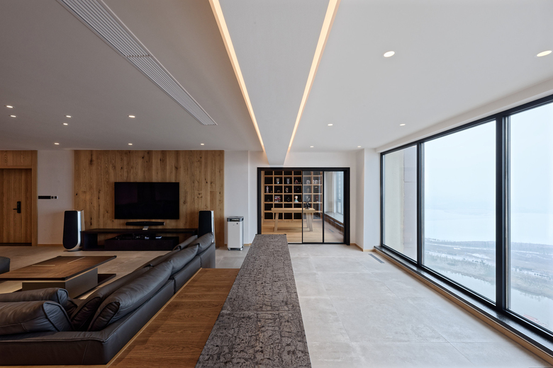 中国の分譲マンションは内装スケルトンで販売されているため、購入者が自由に自分の内装業者を使って工事をすることができる。45階建てのこのタワーマンションは各フロア共用の垂直動線を中心に2区画あり、区画の3方が外壁に面している。壁構造の躯体によって、大まかにリビング、ダイニング、寝室、キッチン、バスルーム、ユーティリティーなどのゾーニングはある程度決まっており、水回りの想定位置には防水工事が施されている。面積が広い割に想定天井高さが2.7m程度と低く、外壁に面した3面の内、1面は複数の寝室が想定されており、その内側にあるリビング、ダイニングと寝室の間には躯体壁があるため、23mの奥行きがあるリビングとダイニングは、圧迫感、閉塞感があった。リビング側には2.7mの奥行きのバルコニー、ダイニング側には4.7mのバルコニーがあり、リビング、ダイニングともに光が入らない状態だった。