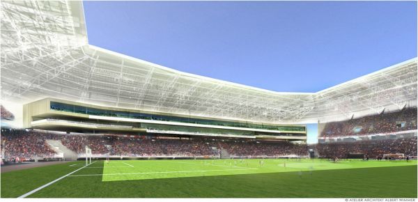 Das EM-Stadion gehört - sowohl was den Einsatz neuester Technik, aber auch den Komfort der Fans angeht – zu den modernsten in Europa. Schon bei der Planung achtete das Architekturbüro Wimmer auf kostenreduzierende Maßnahmen und hat diese im Einreichprojekt vorgetragen. Dahingehende Optimierungen waren im nächsten Planungsschritt, nämlich der Ausführungsplanung, durchzuführen. Dazu ist es aber nicht mehr gekommen, da das Atelier nach der Baugenehmigung in keine weitere Phase mehr eingebunden war.