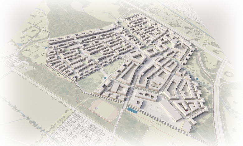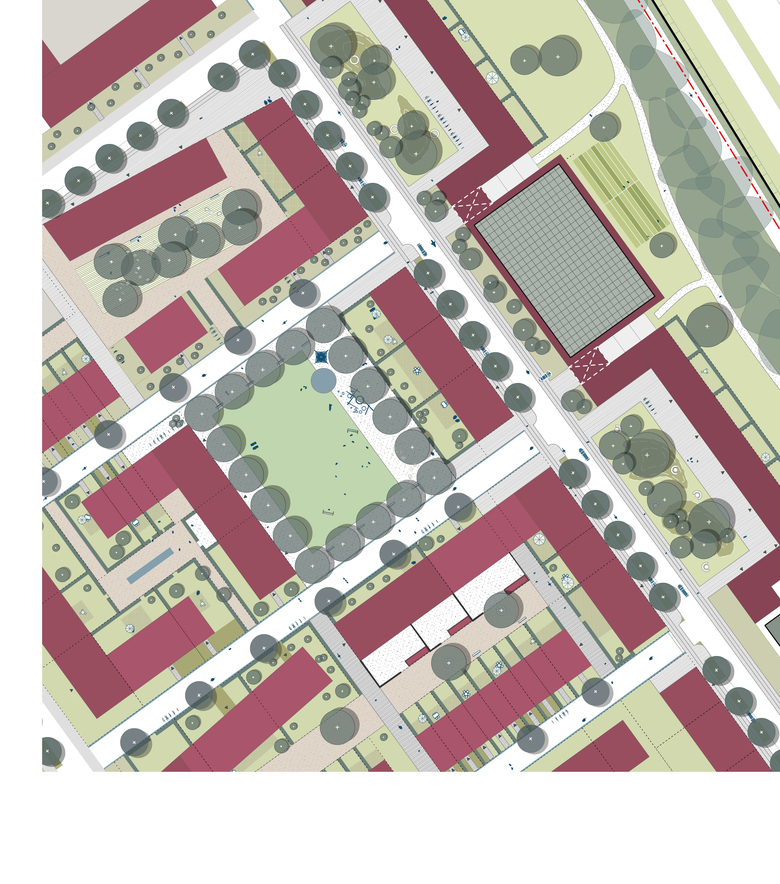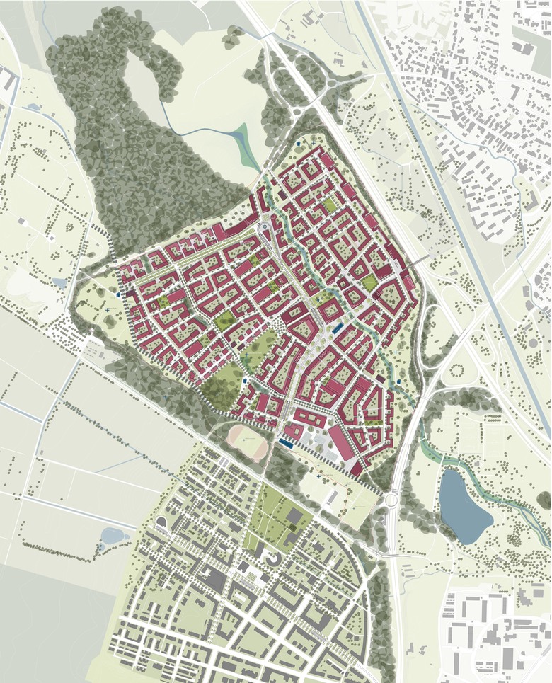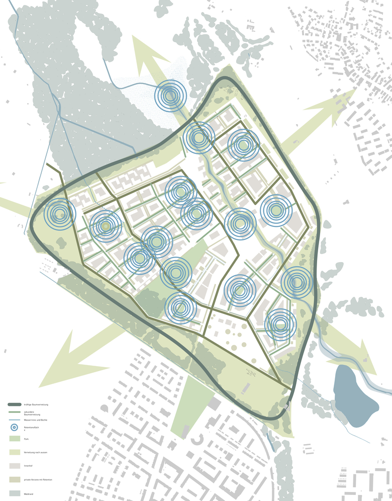 Als Grundmuster der Bebauung wählen wir den Blockrand, weil dieser große Freiräume bei