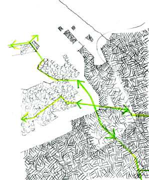 Das neue Quartier soll ein integraler Teil von Uster werden. Eine Nord-Süd-Verbindung für den Langsamverkehr verankert das Gebiet Eschenbüel im Siedlungsgewebe der Stadt, bildet sein Rückgrat und bietet jedem Baufeld eine direkte Beziehung ins Stadtzentrum.