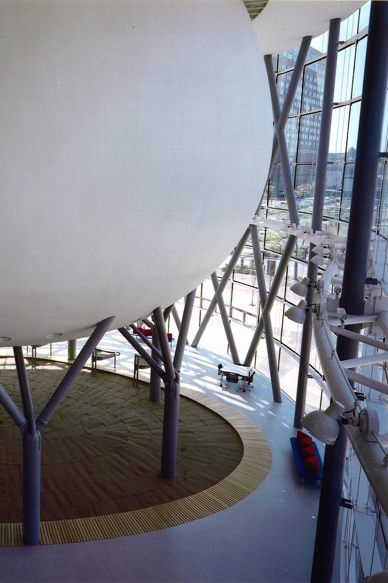 釧路シビックコアの中核施設のひとつとして建設されたこども遊学館は、あそびと学びの空間が融合した児童施設である。夏は涼しく冬は寒冷で日射の長い道東の気候特性を最大限に活かし、外周部をすべてガラスの皮膜で構成した「開放型」の温熱環境とした。内部はこどもたちの活動の場をスパイラルループやブリッジで結び位相幾何的な空間構成としている。ゆるやかな円弧のガラス壁面に映し出された風景は、時々刻々と変化する釧路の新しい風景を生み出していく。