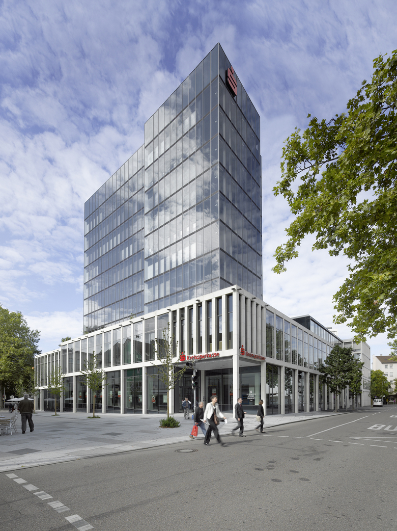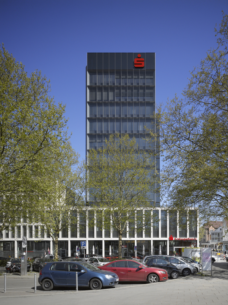 Die Blockrandbebauung der Erweiterung ordnet das Areal der Hauptstelle und orientiert die Kreissparkasse in Richtung Innenstadt. Als Endpunkt der innerstädtischen Nord-Süd-Achse wird der Bahnhofsvorplatz neu formuliert. Die vertikal gegliederte Steinfassade fasst Neubauten und Teile des Bestands zusammen. Das bestehende Hochhaus aus dem Jahr 1974 von Paul Stohrer wird in seiner skulpturalen Prägnanz zurückgenommen und dadurch zum Bestandteil des neu geformten Stadtquartiers. Als erste Kreissparkasse in Deutschland wird die Hauptstelle Göppingen von der DGNB mit Gold ausgezeichnet.
