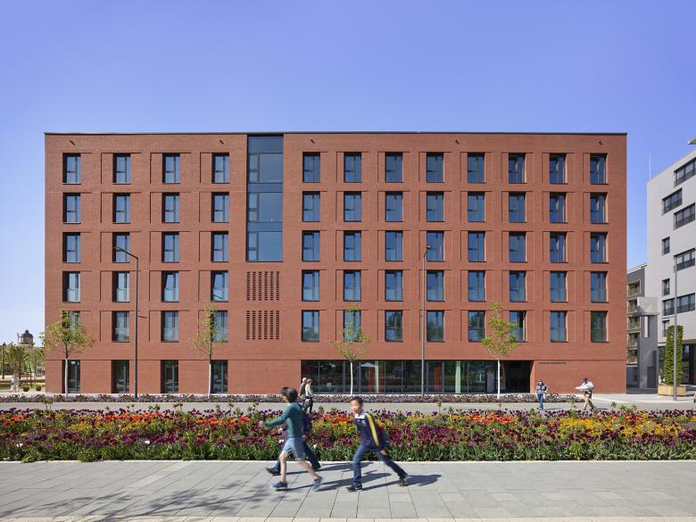 Durch den Neubau entstanden für die Modellbebauung der BUGA 2019 auf den sechs Vollgeschossen in zwei- bis sechser Zimmern 180 Betten für Gäste aus aller Welt. Die Fassaden mit den großen Fensterflächen zur Ostseite ermöglichen den Gästen Ausblicke in das neue Quartier und in den Naturraum des Altneckars. Das Erdgeschoss beherbergt den großzügigen Eingangsbereich mit Foyer und Bistro. Im hinteren, südlichen Bereich des Baukörpers befinden sich die Servicezonen sowie die Technikbereiche. Die Geschosse eins und zwei sind als öffentliche Bereiche definiert, in dem sich der Speisesaal und die Freizeit- und Kulturräume befinden. Die Geschosse drei bis fünf sind komplett als Zimmergeschosse ausgeführt.