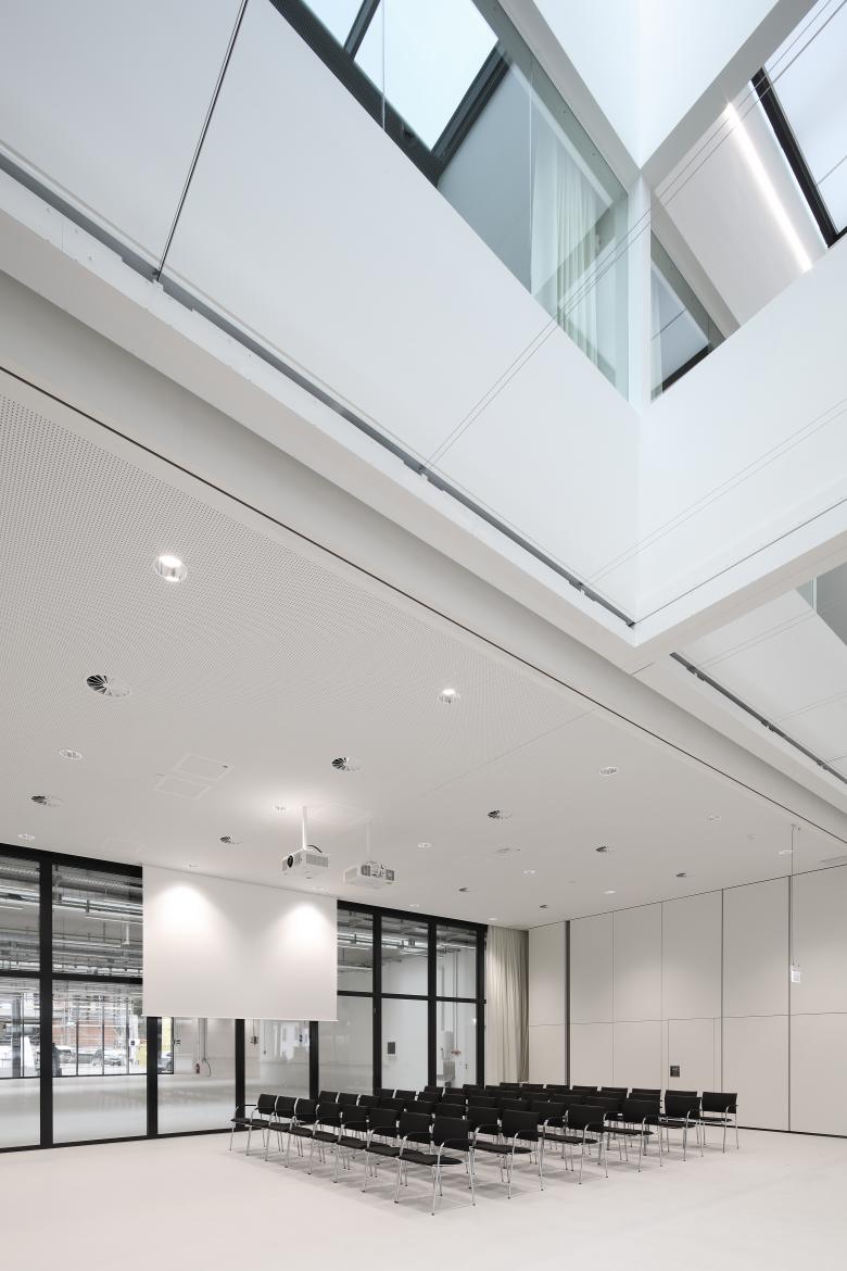 Das konstruktive Konzept lässt ein offenes, über Lichthöfe verbundenes Raumgefüge zu. Mit einem einfachen Regelwerk ist maximale Neutralität und damit Flexibilität hergestellt.