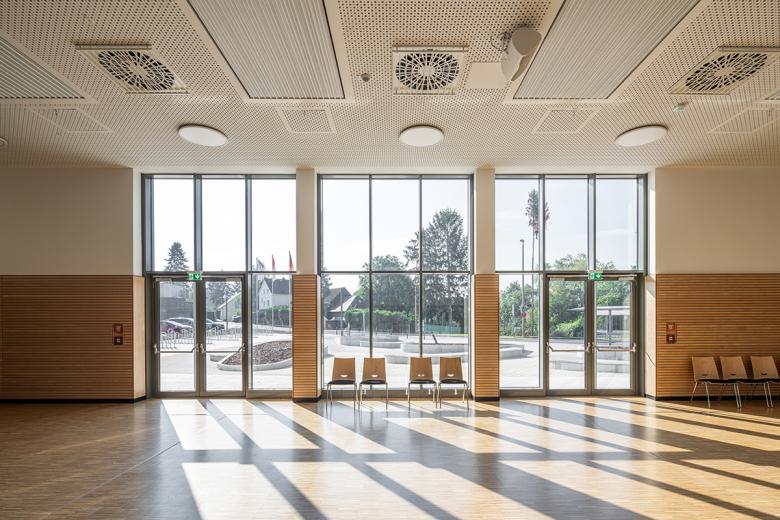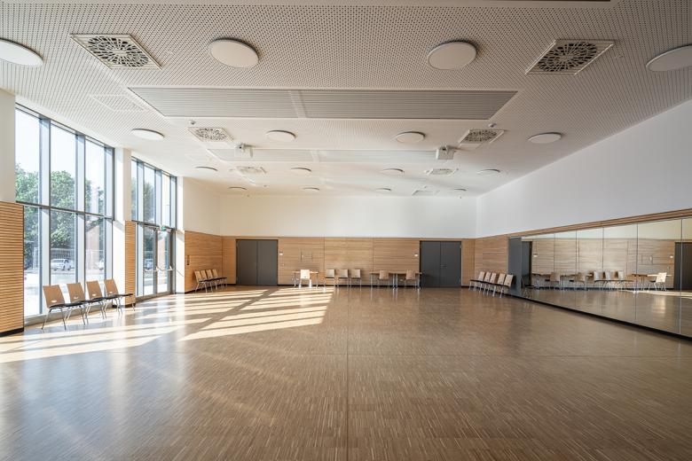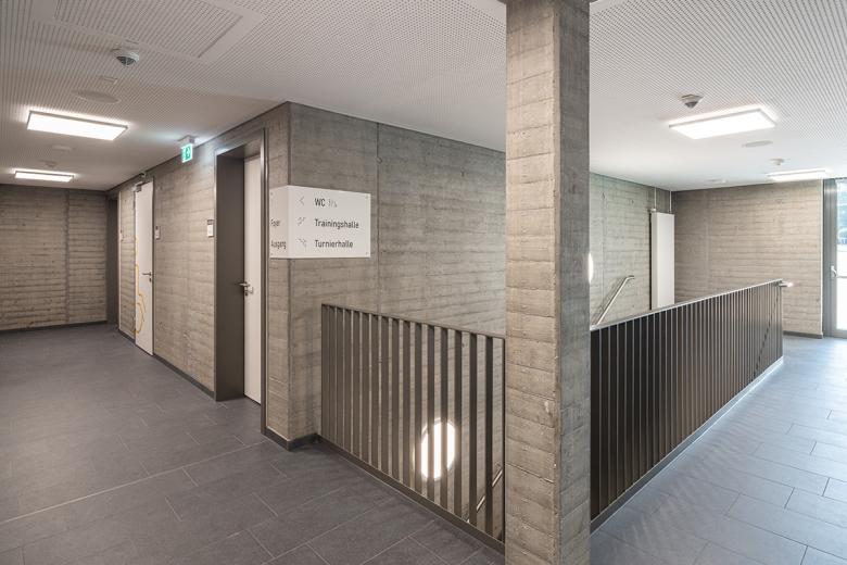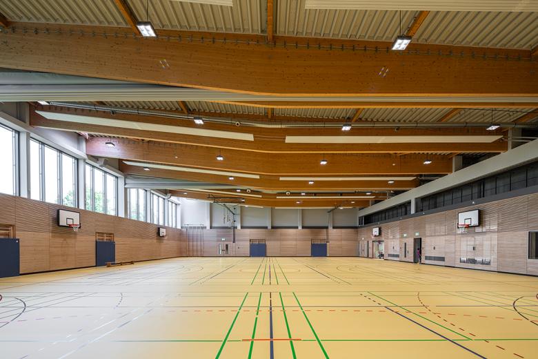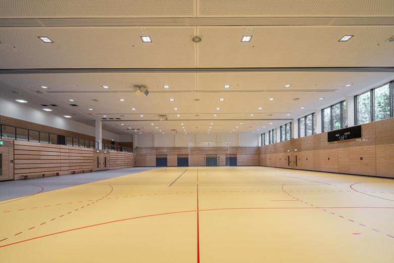 Dem Entwurf der Sporthallen lagen die Vorgaben der DIN 18032-1 „Sporthallen - Hallen und Räume für Sport und Mehrzwecknutzung - Teil 1: Grundsätze für die Planung“ sowie das von der Stadt Bad Homburg v.d.H. vorgegebene Raumprogramm zu Grunde. Mit einer Höhe von 6.12 m des obersten Geschosses mit Aufenthaltsräumen über Geländeoberkante fällt das Gebäude in die Gebäudeklasse 3 nach § 2 (4) HBO. Aufgrund der Nutzung des Gebäudes durch Besucher von Sportveranstaltungen in der Dreifach-Sporthalle im UG und Veranstaltungen in der Mehrzweckhalle im OG handelt es sich um eine Versammlungsstätte nach § 1 (1) Ziffer 1 der Hessischen Versammlungsstättenrichtlinie (H-VStättR).