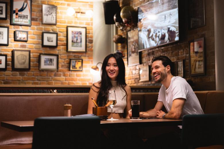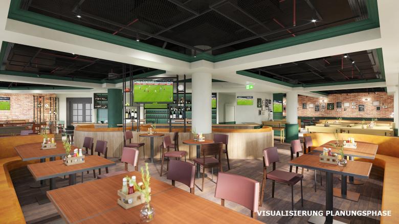 Mit modernem Interieur, knapp 130 unterschiedlichen Sitzmöglichkeiten wie gemütlichen Nischen und großen Community Table, sowie stilvoller Beleuchtung hat BRUMANN eine offene, einladende Stimmung erzeugt, die ein idealer Treffpunkt für alle ist, die in lockerer Umgebung Zeit mit Freunden, Familie oder Kollegen in einer echten Sportsbar verbringen möchten.
