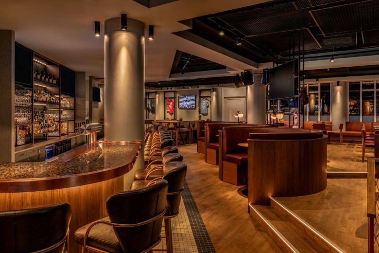 Im Marriott Hotel München zeigt sich das ‚Champions´ nach umfangreichen Renovierungen mit neuem Design und Food-Konzept ihrem internationalen Publikum. Amerikanischer Spirit trifft hier auf bayerische Gastfreundschaft. Nachdem bereits der Greatroom (die Lobby) als gemeinsames Projekt 2023 realisiert wurde, hat BRUMANN für das ‚Champions´ - dem Sportsbar-Brand von Marriott – die gesamte Planung der Innenarchitektur und technischen Gewerke übernommen und war für den Komplettausbau im Herbst 2024 verantwortlich.