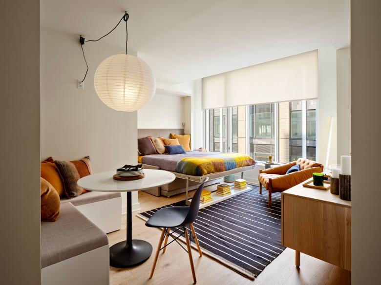 The Suffolk building provides 378 mixed-market rate and affordable units in a 30-story volume. The Norfolk building provides 115 affordable apartments for seniors in a 16-story volume, including a full floor suite with a lounge, game room, yoga/activity room, and a social services office. Additional project amenities include a community room and outdoor roof terraces, with a rooftop pool.