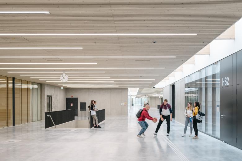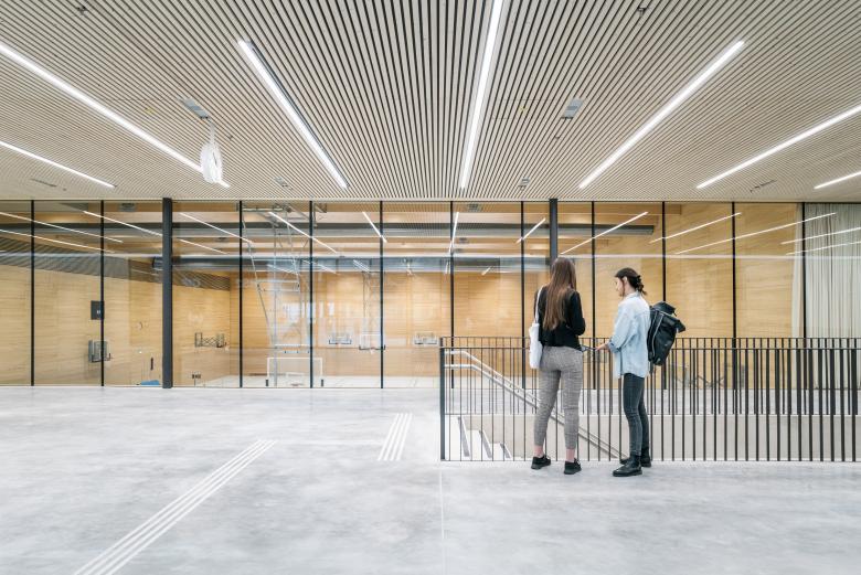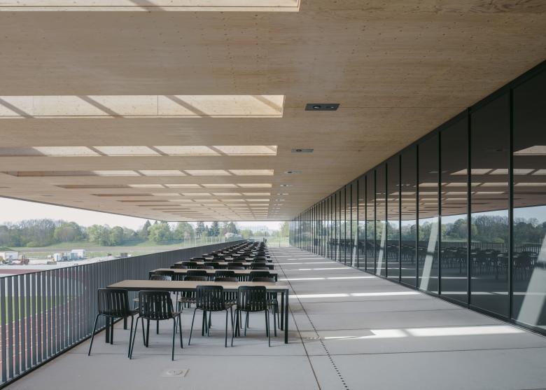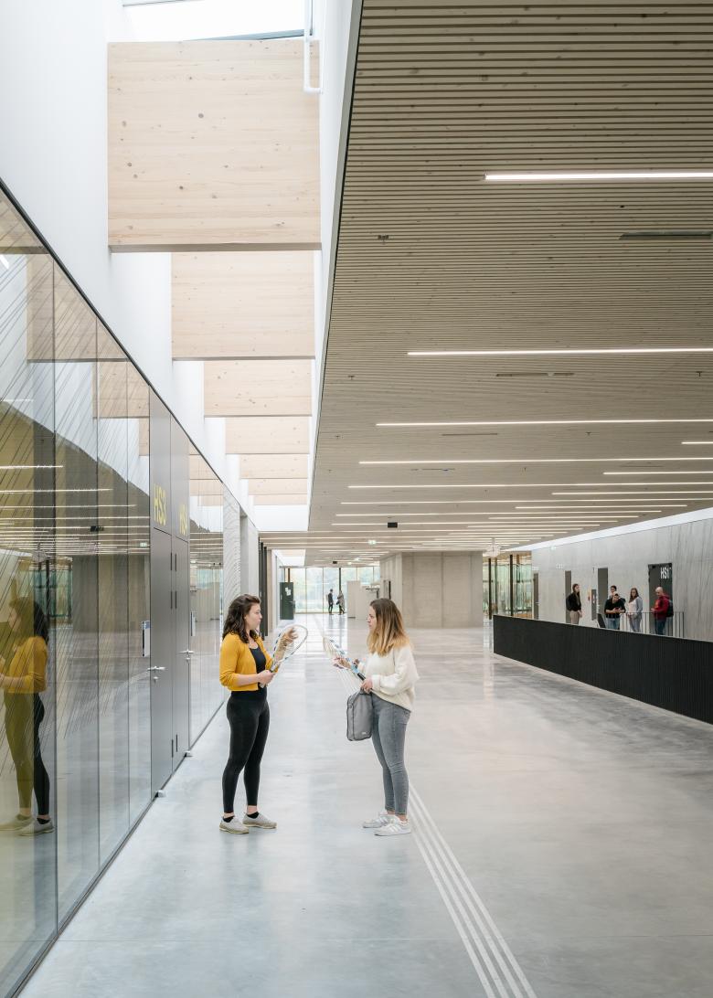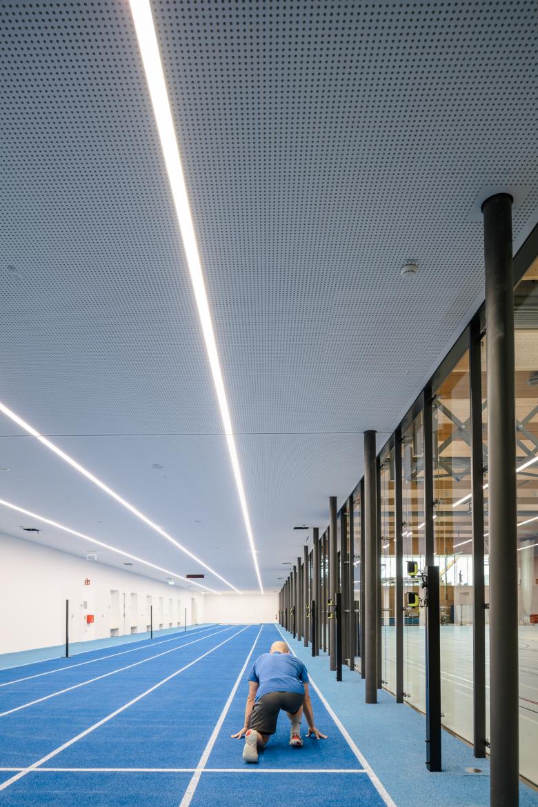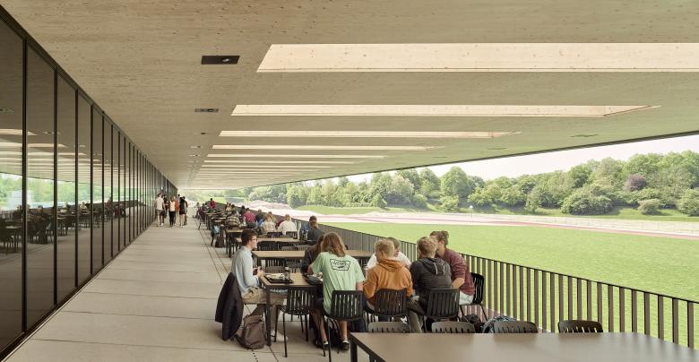 ›Licht, Frische und Großzügigkeit‹: Der Slogan der Olympischen Spiele München 1972 gilt auch heute für unseren Entwurf des Campus der Sport- und Gesundheitswissenschaften der Technischen Universität München (TUM) im denkmalgeschützten Olympiapark der bayrischen Hauptstadt. Mit seiner langgliedrigen Form von 185 Metern Länge und 153 Metern Breite integriert sich der zweigeschossige Holzbau geschickt in den Masterplan von Günter Behnisch und bildet die neue, prägnante Adresse der Fakultät und des zentralen Hochschulsports.