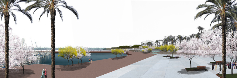 Access to the harbour is possible from both sides of this front, thus the central area is released from the traffic, offering a big esplanade linking the old city with the sea. This reinstates the routes and relationships between the Medina and the sea.With the creation of new docks and the recovery of the industrial ones, the water surface of the harbour expands and approaches the city, as it was before.