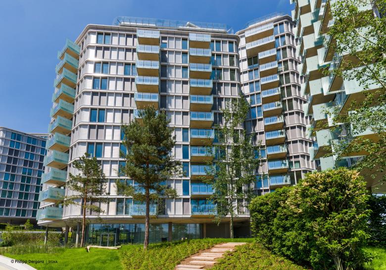 Das Luxushotel und die 300 Parkapartments, die in Wien entstanden sind, sind nicht nur optisch eine gelungene Sache. Es ist auch die fehlerfreie Realisierung unter besonders erschwerten Bedingungen, die beachtlich ist. Bereits bei den Zuschnitten – 2800 verschiedene Fassadenplatten, 138 Stück davon als Eckwinkel – war höchste Präzisionsarbeit gefragt. Keine Platte glich der anderen. Trotzdem war es gelungen, zu 100 % fehlerfrei, zuschnittsoptimiert und ökonomisch zu arbeiten.