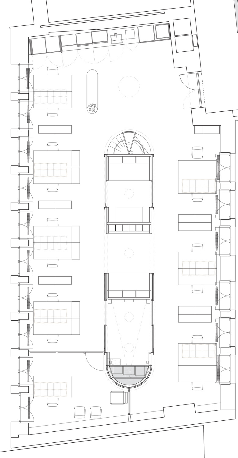 Raum im Raum anstelle Einzelbüros mit Korridor