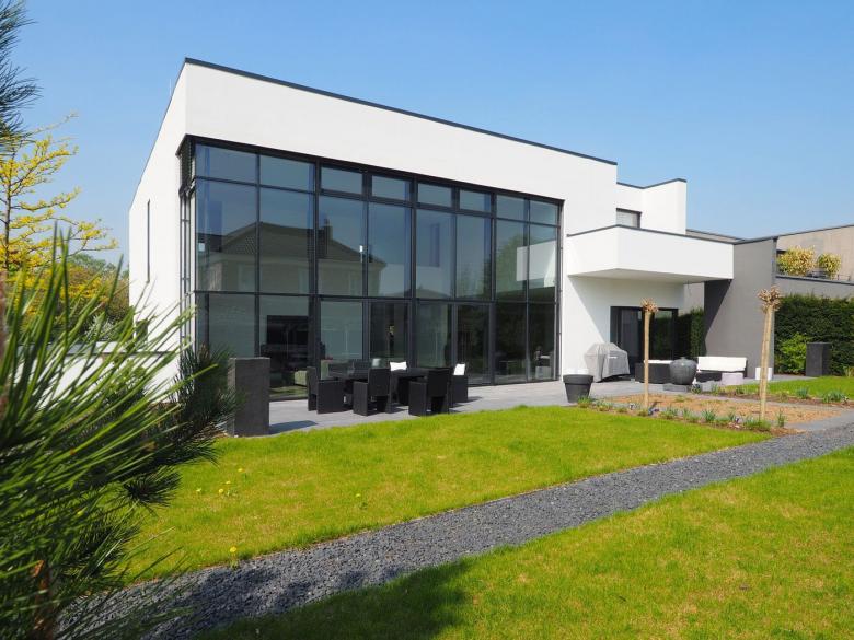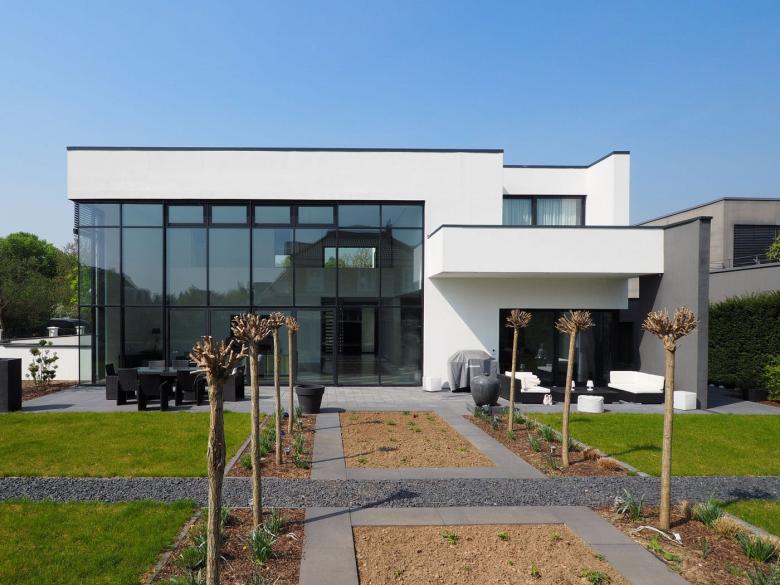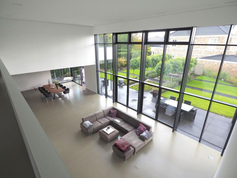 Eine einfache Kubatur bietet einer 5-köpfigen Familie einen großzügigen Lebensraum, der vor allem durch seine zweigeschoßhohe Wohnhalle mit eingezogener Erschließungsgalerie besticht.