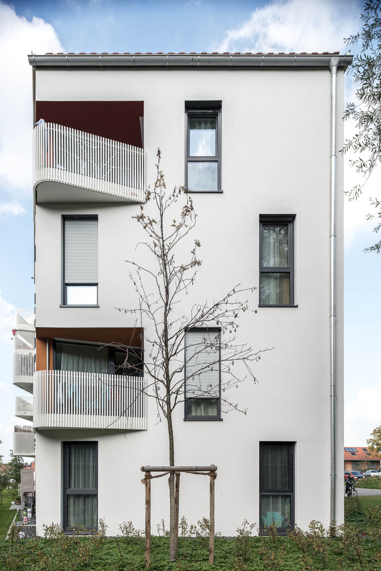 Die monolithische Bauweise mit Ziegelmauerwerk wurde gewählt, weil sowohl die Erstellungskosten als auch die robuste und zuverlässige Umsetzung überzeugen. Auch sämtliche Innenwände wurden in Hochlochziegelmauerwerk unterschiedlicher Stärke ausgeführt, da der Ziegel hervorragende Brand- und Schallschutzeigenschaften besitzt. Die Wärmeerzeugung erfolgt via Fernwärme in Verbindung mit Fußbodenheizungen. Eine kontrollierte Bad- und WC-Lüftung mit Nachströmung über den Fensterfalz sorgt für ideales Raumklima. So konnte der erste Bauabschnitt im KfW 70-Standard ausgeführt werden – der zweite Bauabschnitt sogar als Energieeffizienzhaus 55. Mieter wie Eigentümer können sich somit über zukunftssicheren Wohnraum in solider Ziegelbauweise mit langfristigem Werterhalt freuen.
