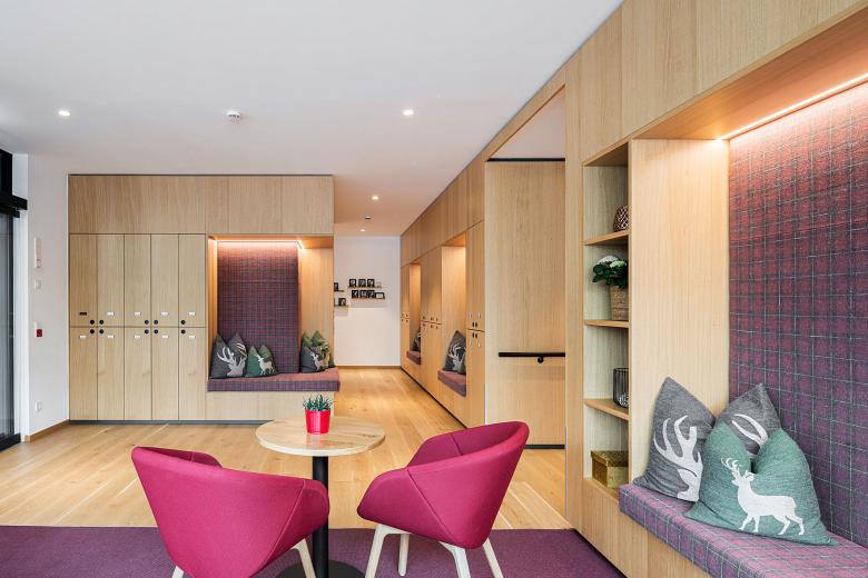 Doch nicht nur was Wohnkomfort und Ambiente betrifft, geht „Wohnen im Rosengarten“ um einiges über die üblichen Wohn- und Unterstützungsangebote für Seniorinnen und Senioren hinaus: Ein täglich besetzter Rezeptionsdienst nimmt auf Wunsch auch Postpakete entgegen, das hauseigene Carsharing-Angebot bietet umweltfreundliche Mobilität für gelegentliche Ausflüge in die Umgebung, der liebevoll eingerichtete Gemeinschaftsraum steht für geselliges Beisammensein oder auch private Familienfeiern in exklusivem Ambiente zur Verfügung und die Wellnessoase mit Komfortbadewanne sorgt für entspannte Stunden. Der Zugang zu diesen Leistungen ist kostenfrei bzw. in der Miete inkludiert.