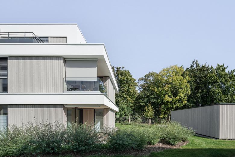 Die städtebauliche Maxime war ein Ensemble aus überschaubaren Einheiten zu entwickeln, die sich in ihrer Maßstäblichkeit in den umgebenden Kontext harmonisch und selbstverständlich einfügen. Die Baukörper selbst sind durch Versprünge, Höhenversätze und unterschiedliche Materialien gegliedert, um eine Integration in den Landschaftraum zu gewährleisten. Besonders wichtig war Bauherr und Architekten, dass fast ausnahmslos jede Wohnung nach zwei Himmelsrichtungen orientiert ist und einen privat nutzbaren Außenbereich in Form von (Dach)terrassen oder wettergeschützten Loggien besitzt.