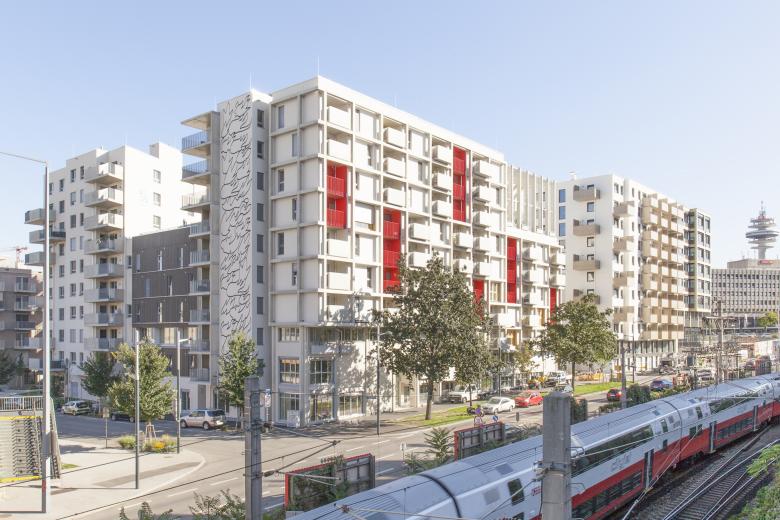 Die Wohngebäude sind in beinahe allen Geschossen, kombiniert mit Dachgärten, Begrünungen und Freiräumen, miteinander verbunden.