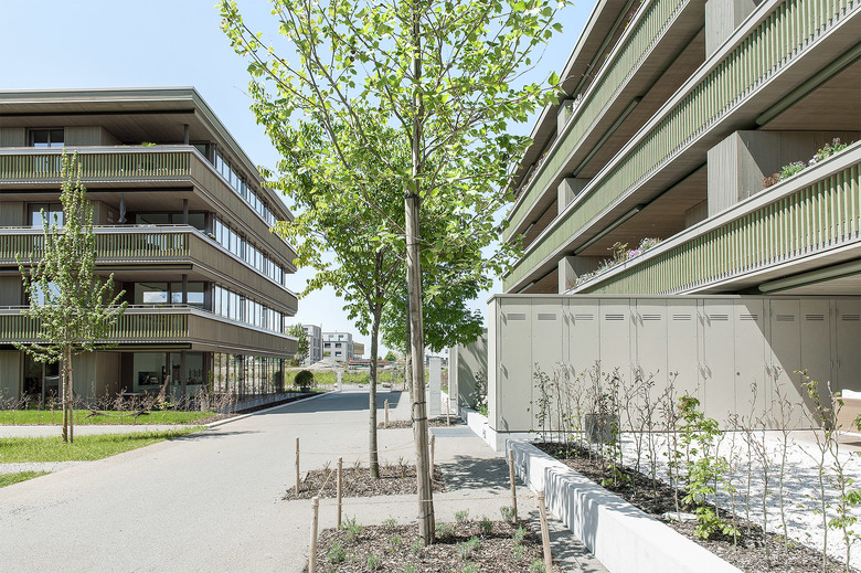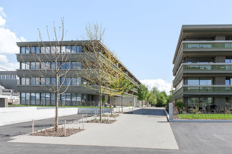 Zwei präzise gesetzte Bauvolumen komplettieren die Gartensiedlung Erlen. Die neuen Wohngebäude orientieren sich in ihrem Massstab an den bestehenden Gebäuden der Gartensiedlung Erlen. Die Aussenräume der Siedlung werden durch die neuen Bauten gefasst. Im Inneren der Siedlung entstehen zwei Hofräume: eine Promenade als siedlungs-öffentlicher Erschliessungsraum und ein lichter Hain von Bäumen und Sträuchern als nicht aktiv genutzter Siedlungsgarten. Der neue Zugang im Westen nimmt Besucher und Bewohner in Empfang und führt sie in die innere Welt der Gärten, Wege und Plätze, welche die gesamte Anlage durchzieht und mit dem bestehenden Erlenquartier im Osten verknüpft. Das verwobene Wegsystem, die locker verteilten Baumgruppen und das üppige Grün gliedern den Freiraum der Siedlung. Der motorisierte Individualverkehr der Wohnanlage wird an der neu entstehenden Quartierstrasse im Westen direkt abgenommen und unterirdisch zu den Wohnhäusern geführt, wodurch eine verkehrsfreie Begegnungszone entsteht. Die offene Siedlung mit grossen, zusammenhängenden Freiräumen bietet ein attraktives Wohnungsangebot für Menschen, welche den Wunsch nach zeitgemässem Wohnen in einer urbanen aber doch ländlichen Umgebung suchen. Verschiedenartige Wohnungstypen reihen sich in unterschiedlichster Art aneinander. Geschosswohnungen, überhohe Wohnungen, Duplex-Wohnungen, reihenhausähnliche Maisonetten, Dachwohnungen mit Oblichtern etc. verbinden sich zu einem dichten, typologischen Gefüge.