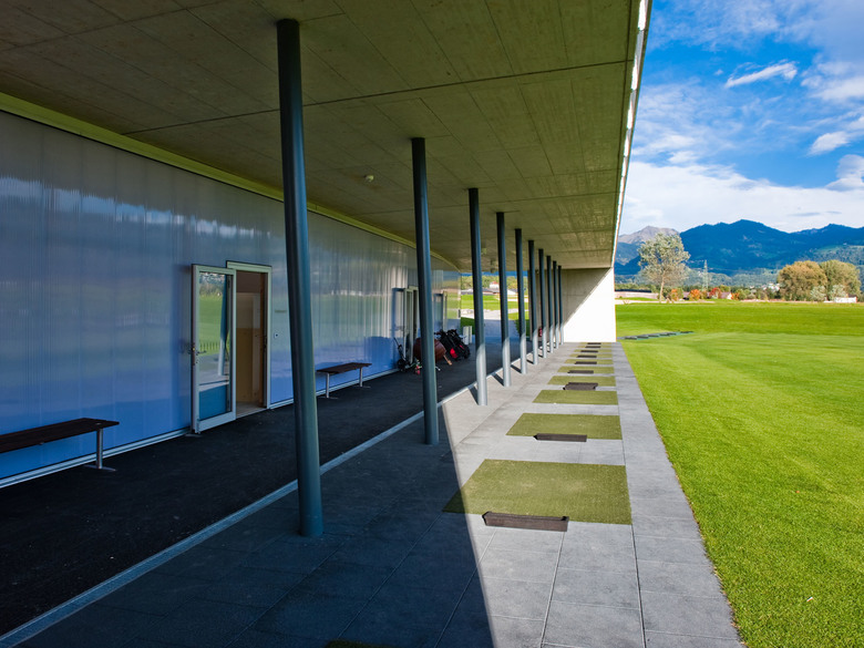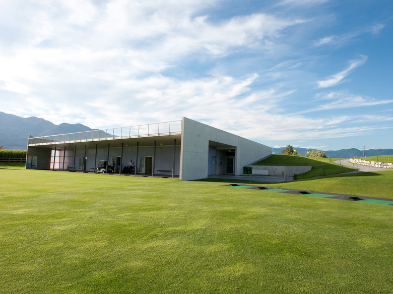 Nach seiner Fertigstellung präsentiert sich die neue eingeschossige Stahlbetonkonstruktion als ein im Norden ins Erdreich eingegrabenes Volumen, das sich nach Süden zur Abschlag-Range hin öffnet. Das Dach ist komplett begrünt, die Gebäudeform nach Süden hin leicht abgerundet. Die Abschlagzone ist überdacht und verfügt über elf gedeckte Abschlagplätze. Weitere Plätze sind daneben im Freien angeordnet. Der Boden ist mit Tartan belegt. Die zurückgesetzte Fassade wurde mit transluzenten Polycarbonatplatten ausgestattet, die es erlauben, die dahinter liegenden Räumlichkeiten natürlich zu belichten. Situiert sind hier die Garderobe, Lagerflächen und Toiletten, ein Besprechungszimmer sowie der Trainerbereich. Eine weitere - nachgeordnete – Raumschicht ist den persönlichen Boxen der Spieler vorbehalten, die von diesen gemietet werden können. Ursprünglich sollte auch die Dachebene als Abschlagplatz genutzt werden. Aus Sicherheitsgründen musste dieser Plan jedoch fallen gelassen werden. So fungiert das Dach heute als Aussichtsterrasse mit schönem Blick nach Süden.