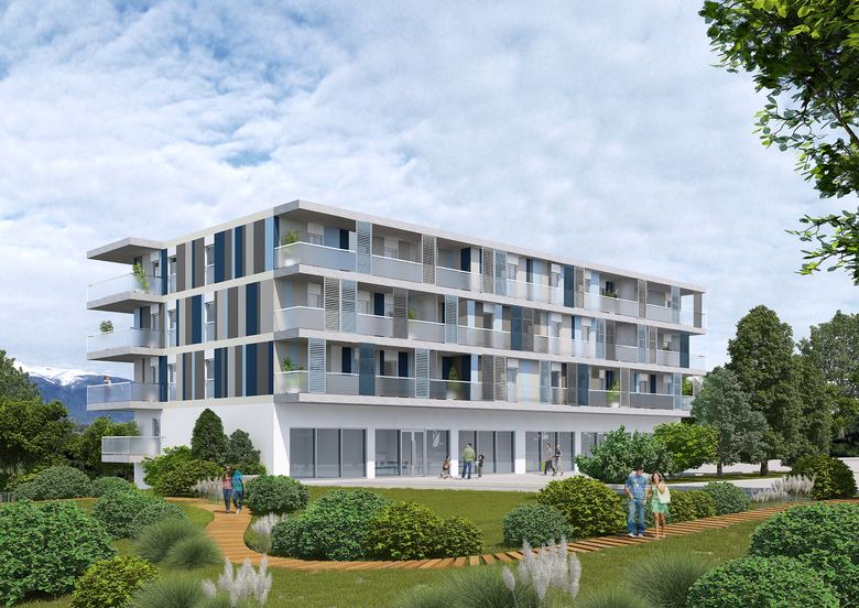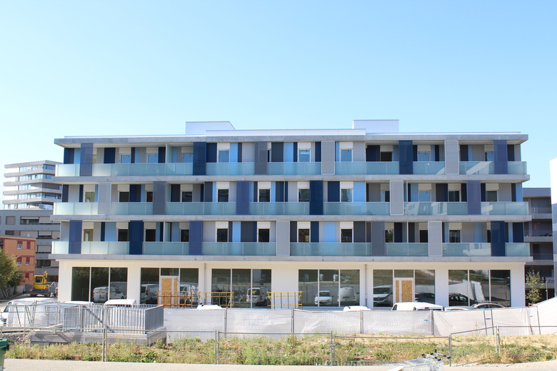 Le bâtiment B4 est une construction labellisée Minergie A, avec isolation thermique renforcée, ventilation double flux et façades ventilées avec bardage de plaques de fibres-ciment. Il est composé de deux allées, cages A et B, qui distribuent 18 logements de catégorie ZDLOC, des commerces au rez-de-chaussée, côté Esplanade des Récréations.