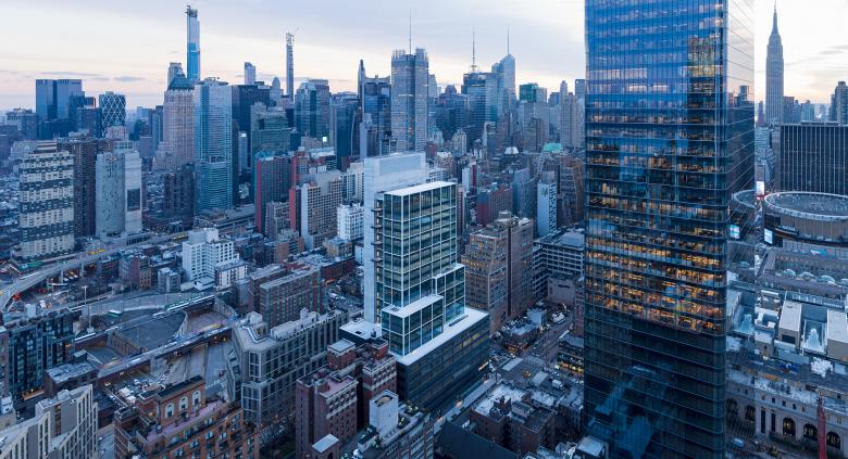 Hudson Commons in New York is a repositioning project by Kohn Pedersen Fox. KPF renovated the 8-story ware house and designed a new 17-story building to rise from the podium.