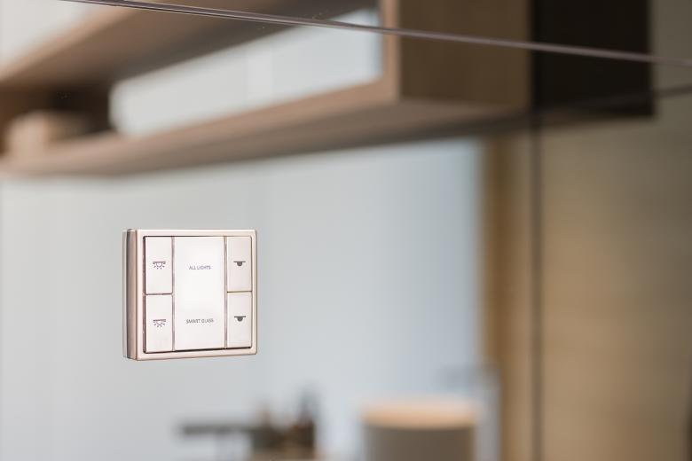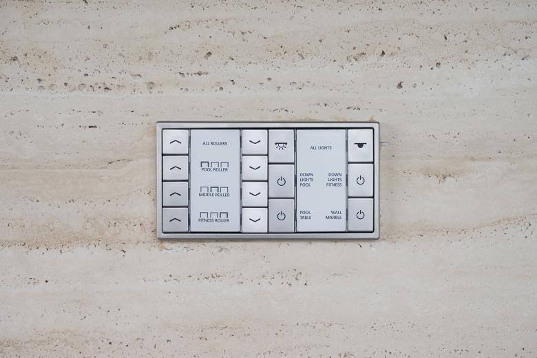 Das Ziel bestand darin, die Individualität des Bauherrn in seinen verschiedenen Rollen als Sammler, Ästhet und Gastgeber architektonisch umzusetzen, ohne dabei auf Zurückhaltung und Raumqualität zu verzichten. Der Grundriss des großzügigen Wohnhauses ist um eine zentrale Halle mit Galerie organisiert, von der aus zwei Flügel abzweigen: Einer beherbergt private Rückzugsräume, der andere Gemeinschaftsbereiche sowie Spa-, Fitness- und Poolanlagen. Die Gestaltung folgt dem Konzept des „Modern Tropical Living“: Großformatige Verglasungen öffnen die Räume zum Garten, organische Materialien wie Holz und Stein treffen auf Marmor, Metall und Licht. Der Wechsel zwischen offenen Sichtachsen und gezielt inszenierten Zonen – etwa in der Sammlungskammer oder am skulpturalen Treppenlauf – erzeugt ein Wohngefühl, das zugleich repräsentativ und intim wirkt. Zur Steuerung von Licht, Klima und Funktionen wurde ein KNX-System implementiert. Schalter und Taster der Serie LS 990 von JUNG wurden gezielt in unterschiedlichen Ausführungen eingesetzt: Edelstahl in hellen Bereichen und Dunkelaluminium im Kontrast zu dunkleren Raumkonzepten. Die klare Geometrie und die hochwertige Haptik dieser Serie fügen sich nahtlos in die fein austarierte Materialkomposition ein – als funktionales Detail mit gestalterischem Anspruch.