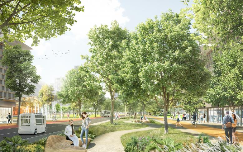The HCMC East Innovation District Masterplan provides a robust framework for urban transformation that capitalizes on the built and the natural ecosystem. The Masterplan is underpinned by socio-economic and sustainability objectives that are an integral part of the spatial design. The public transport and mobility system, as well and the blue and green network of waterways bring permeability and hierarchy to the existing heterogeneous urbanization. This new framework directs the much-needed overcoming of physical challenges such as barriers, large distances and dispersed urbanization to create an attractive liveable urban environment.