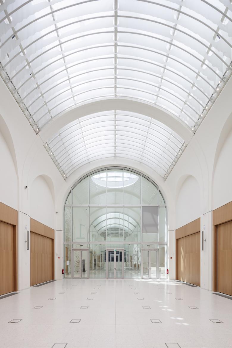 Mitten im Regierungsviertel, unweit der Straße „Unter den Linden“, befinden sich die neuen Berliner Dienstsitze des Bundesministeriums für Gesundheit und des Bundesministeriums für Familie, Senioren, Frauen und Jugend. In der „Friedrichstadt“ entwickelte sich seit 1880 ein quirliges Bankenviertel. Zu ihm gehörte auch der einstige Hauptsitz der Deutschen Bank: zwei große Baublocks, deren Substanz offengelegt und erlebbar gemacht wurde. Säulen, Stuck und Kassenhallen waren verschwunden – Franz Ehrlich (1907–1984) hatte die Häuser für mehrere DDR-Institutionen umgebaut (DDR-Innenministerium, Haus der Volkspolizei). Nach einer Zwischennutzung als „Gauck-Behörde“ erfolgte zwischen 2017 und 2023 die Instandsetzung. Wir passten den historischen Bestand den heutigen Erfordernissen an.