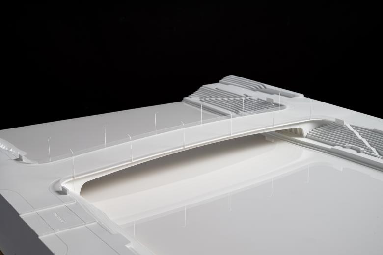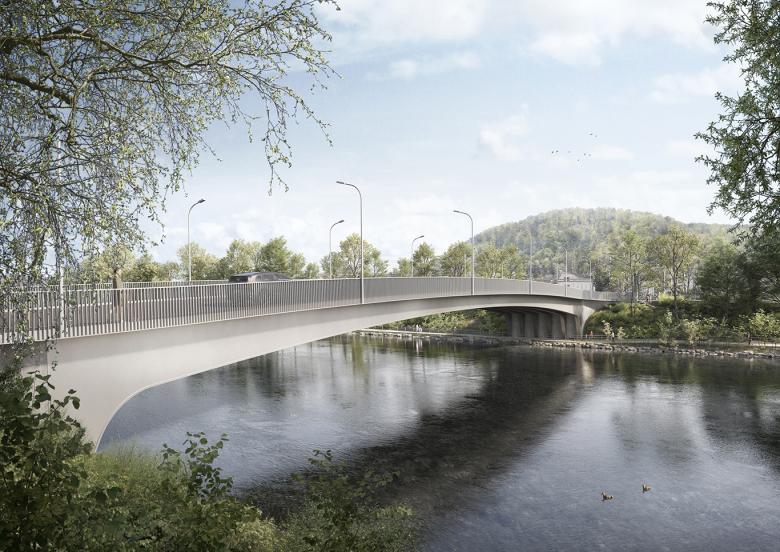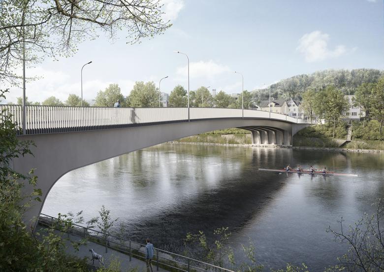 Die neue Trimbacherrücke ersetzt die historische Brücke von E. Froté aus dem Jahre 1914 mit einer vergleichbaren Haltung und Intention, indem in einem einzigen gewölbten Sprung über die Aare gesetzt wird, bei gleichzeitig maximaler Offenhaltung des Brückendaches über dem ökologisch wertvollen Flussraum. Die beidseitigen Brückenenden öffnen sich zu den lokalen Strassen mit ausgerundeten Widerlagern und Geländerarmen bis zu festen End-Pfeilern, die quasi die Geländer optisch festzurren. Der Oltner Uferweg wird Teil des Flussraumes, indem das Widerlager und der Brückenkopf rückversetzt werden. Beim Trimbacher Ufer bleibt die Widerlagerkante dagegen in der Ebene der bestehenden Ufermauern. Mit den oben ausgerundeten Peitschen-Kandelabern wird der Strassenraum über der Brücke in der gleichen Semantik gefasst, wie sie mit dem Rahmentragwerk über dem Flussraum entsteht.