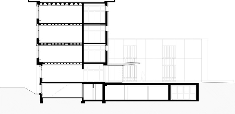 Insbesondere beim Eingang zum Haupttrakt entstand ein neuer Windfang mit Türautomaten und einem grosszügigen Vordach.