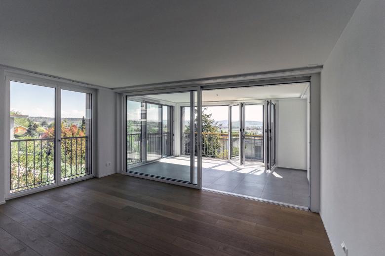 Die Typisierung reicht von mittelgrossen Gartenwohnungen, über kleinere Geschosswohnungen mit integrierten Vier-Jahreszeiten-Zimmer bis zu grosszügigen Attika-Wohnungen mit grossen Dachterrassen.