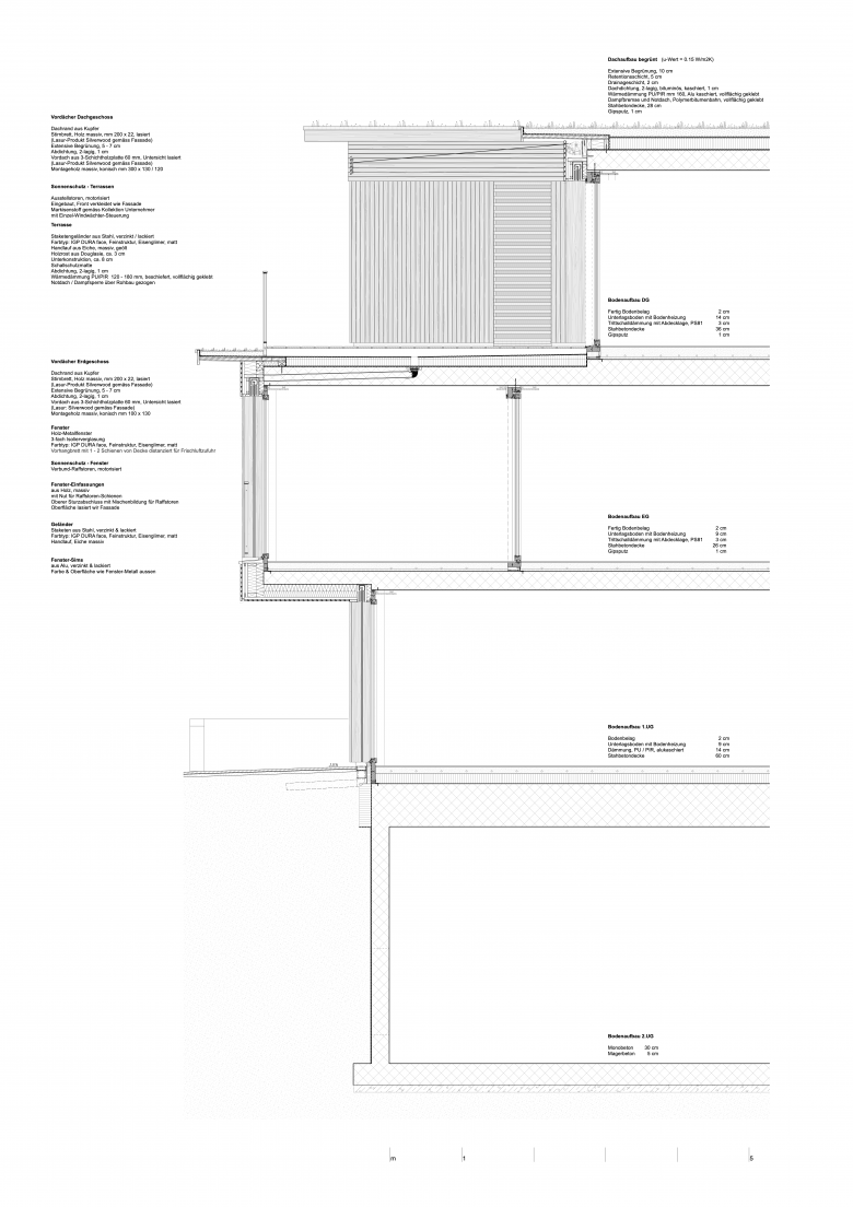 Die öffentlichen und privaten Ansprüche an eine Verdichtung der bestehenden Bauzonen bedingen eine kompakte und knappe Bemessung aller Räume. Dieser relativen Enge entgegen wirkt ein grosszügiges Belichtungskonzept mit häufig zweiseitig besonnten Räumen und mit Nasszellen, die direkt über der Fassade natürlich belichtet werden.