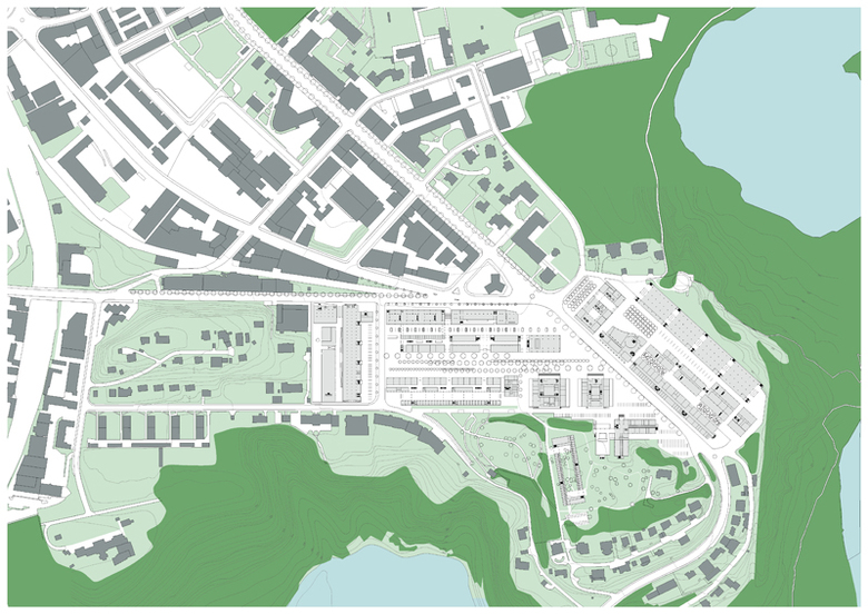 Die Pérolles-Ebene in Fribourg bedeutet heute ein städtebauliches Vakuum zwischen der Stadt des 19. Jahrhunderts und dem Grüngürtel, welcher auf natürliche Weise durch die steilen bewaldeten Abhänge zur Saane gegeben ist. Mit dem vorgeschlagenen städtebaulichen Plan wird dieses Hochplateau im städtischen Sinne dicht bebaut und mit bedeutenden Aussenräumen ausgestattet. Für die durch die Achse des Boulevard de Pérolles entstandenen Teilebenen werden unterschiedliche Bebauungsstrategien angewendet. Die Geometrie der Restbebauung sowie die Fortsetzung der weiträumig übergeordneten städtischen Bebauungsmuster sind dabei wichtige Grundsätze, wobei nicht die Stadtreparatur, sondern die Schaffung von städtischem Raum im Vordergrund steht.