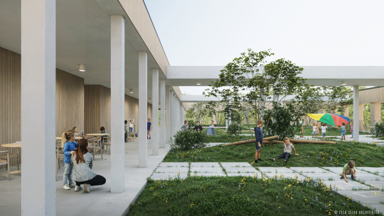 1. Preis: Dreifachturnhalle, Tagesstrukturen und denkmalgeschützter Pavillon