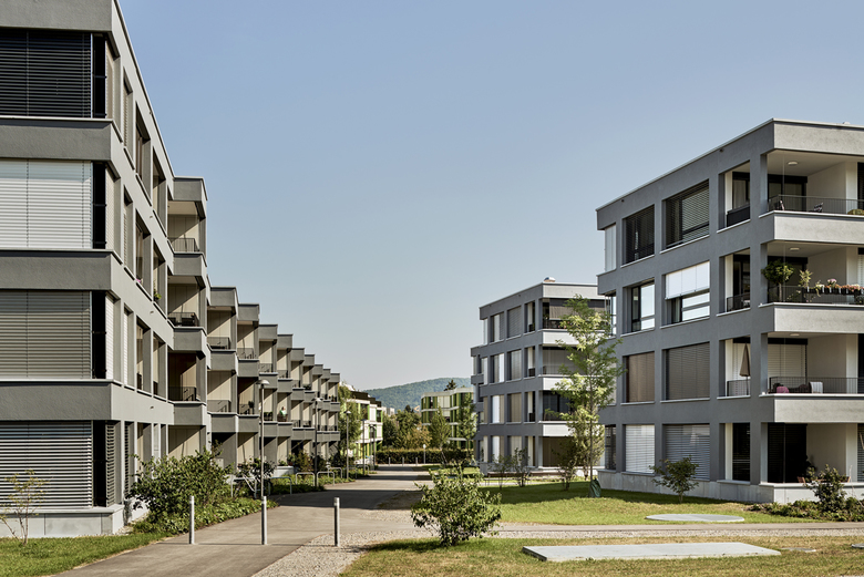 Ein landschaftsnah gestalteter Park, eine stark befahrene Strasse und die Aussicht aufs Schloss prägen den Ort. Die Überbauung besteht aus einem strassenbegleitenden Baukörper, der die Frage des Lärmschutzes über die Ausbildung des Grundrisses löst, und drei in den Park ausgreifenden Zeilen, die sich zur Landschaft und Aussicht hin öffnen. Kernstück der Wohnungen ist der typologisch neuartige, diagonal ausgerichtete Wohn- und Essraum, der für eine optimale Besonnung sorgt, eine gute Möblierung ermöglicht und den Blick aufs Schloss freigibt.