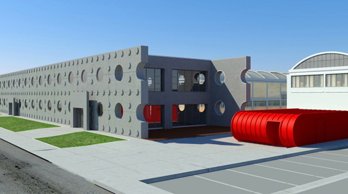 Il progetto mostra un corpo allungato lungo la strada di una piccola area industriale in Toscana. L'edificio occupa una superficie di circa 3.000 mq ed è sviluppato su due livelli fuori terra. La distribuzione interna risponde ad un serrato programma funzionale indicato dal committente: un asilo, la palestra, la mensa per i dipendenti e gli uffici. La facciata è costituita da pannelli pre-fabbricati in cemento, caratterizzati da uno spesso disegno a rilievo, che regala una forte identità al fabbricato.