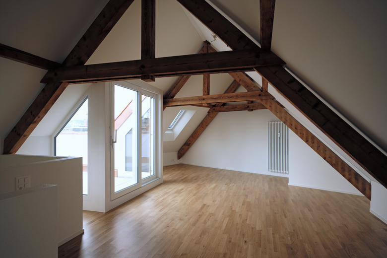 Im Zentrum der Massnahmen stand die Grundrissoptimierung Korridor, Küche, Nasszelle(Umbauzonen) sowie eine komplette Sanierung der Oberflächen in den Zimmern (Sanierungszone) und der Ausbau des Dachraumes zu Maisonette-Wohnungen mit internen Wohnungstreppen.