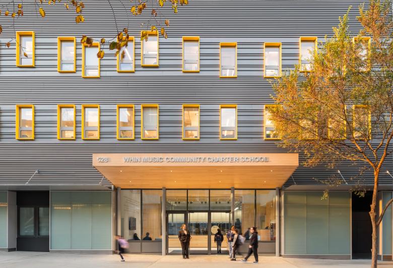 People walking along West 162nd Street in Manhattan's Washington Heights neighborhood would probably have a hard time believing the WHIN Music Community Charter School, with its ribbed aluminum panels and yellow window frames, is a former parking garage that was renovated and added to by...