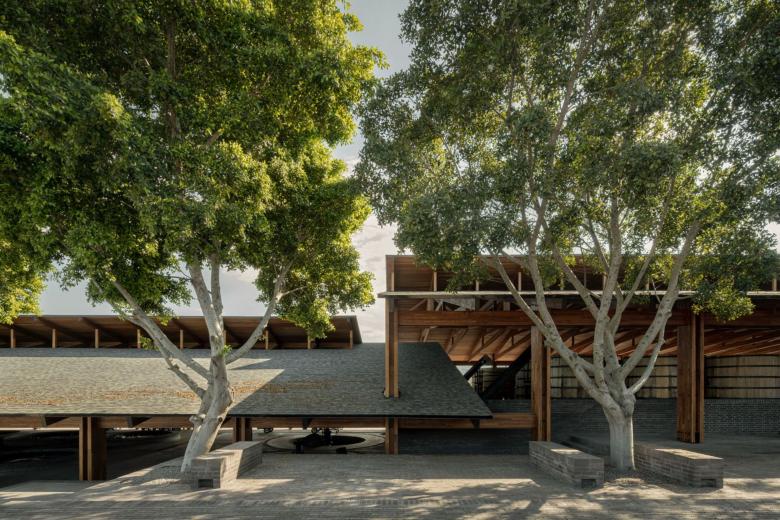 Estudio ALA's project for a mezcal distillery, or palenque, in the Mexican state of Michoacan includes production areas, worker dining areas, and recreational spaces. The programmatic spaces are shaded by generous roofs supported by mass timber and integrated into the natural topography...